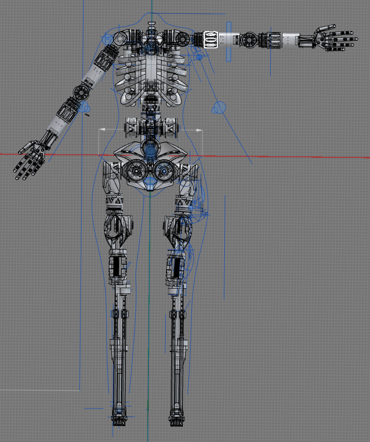 Co-designed a full-scale biomimetic skeleton for teleoperated prosthetic embodiment: articulated hands, compliant joint assemblies, ribcage, pelvis, and cranial housing. Features patented modular over-mold layers (synthetic subdermal and epidermal coverings) and compliant inserts that replicate hinge, pivot, ellipsoidal, and ball-and-socket joints found in biological systems.