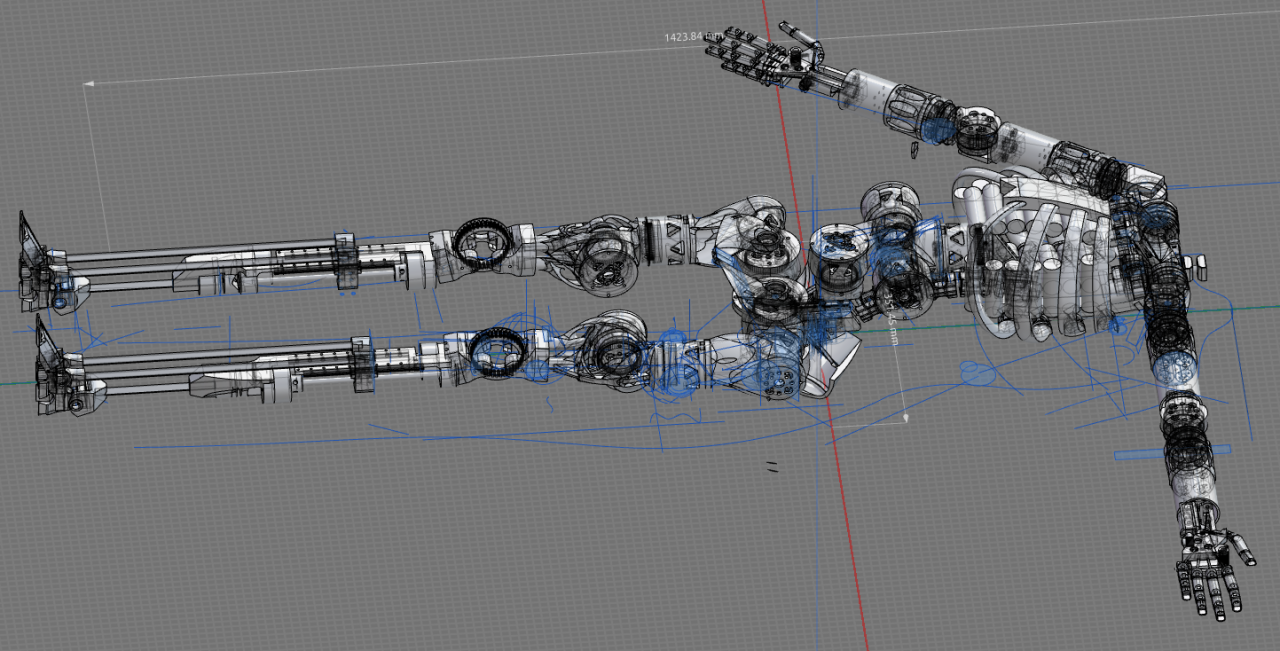 Co-designed a full-scale biomimetic skeleton for teleoperated prosthetic embodiment: articulated hands, compliant joint assemblies, ribcage, pelvis, and cranial housing. Features patented modular over-mold layers (synthetic subdermal and epidermal coverings) and compliant inserts that replicate hinge, pivot, ellipsoidal, and ball-and-socket joints found in biological systems.
